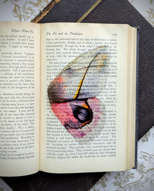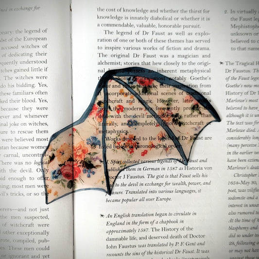 Clear Bookmark Floral Flower Patterned Bat Dragon Wing Goth Gothic Dark Academia Book Lover Reader Gift Handmade Artist
